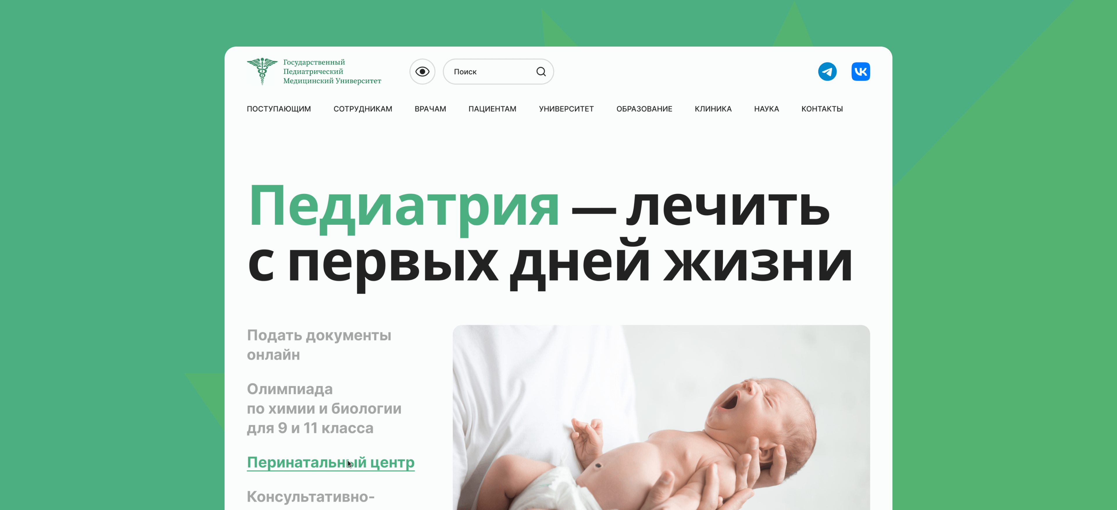 Концепт сайта медицинского университета с информацией для абитуриентов, студентов и преподавателей